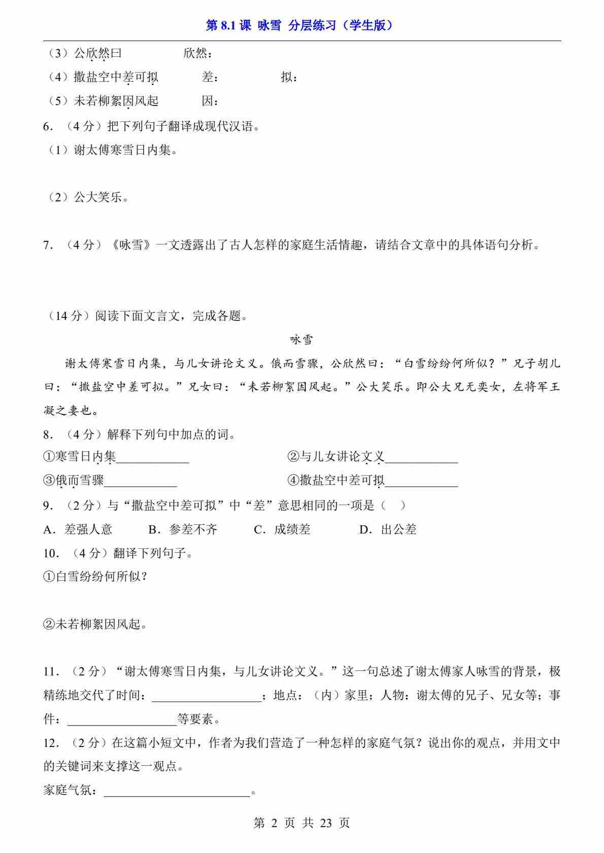 首页 > 全部 > 分层练习 > 第8.1课 咏雪(分层练习)