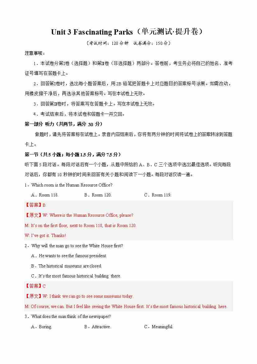 首页 > 全部 > 单元测试 > Unit 3 Fascinating Parks(单元测试·提升卷)(教师版)
