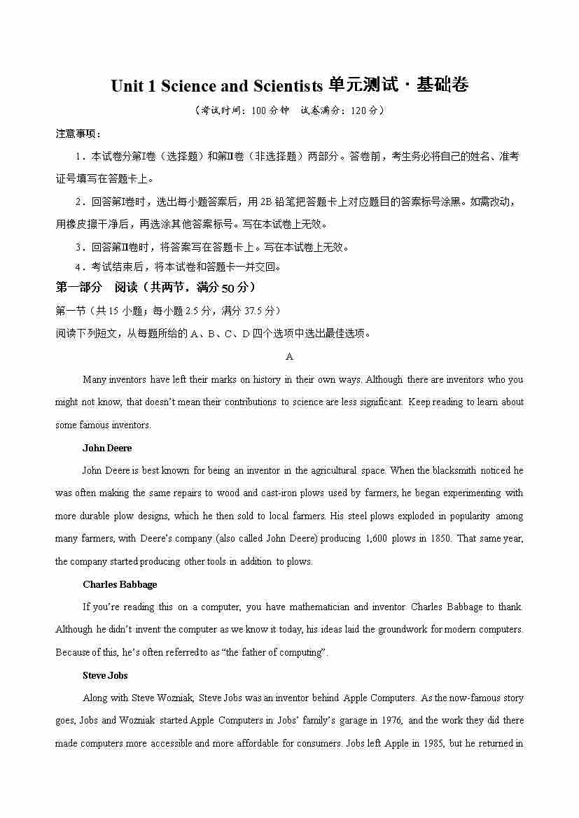 首页 > 全部 > 单元测试 > 高二英语选择性必修第二册Unit 1单元测试·基础卷(教师版)