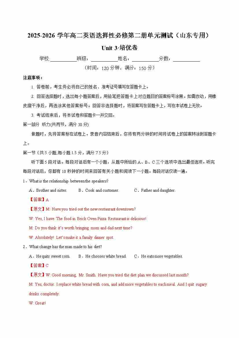首页 > 全部 > 单元地区卷 > 高二英语选择性必修第二册 Unit 3 单元测试·山东专用(教师版)