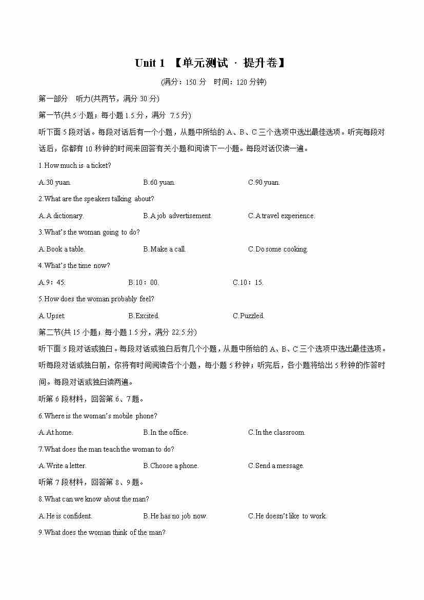 首页 > 全部 > 单元测试 > Unit1 ART(单元测试 · 提升卷)(学生版)
