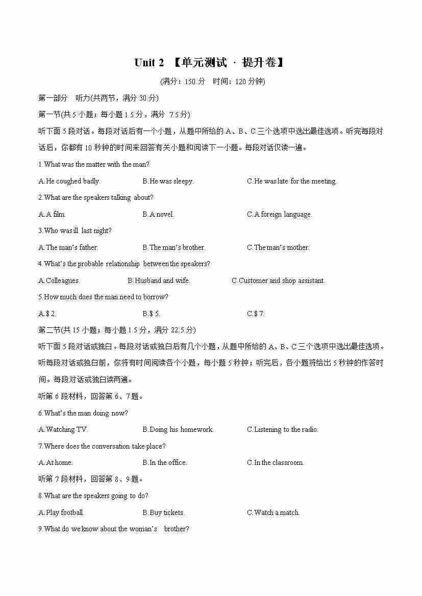 首页 > 全部 > 单元测试 > Unit 2 Healthy Lifestyle(单元测试 · 提升卷)(学生版)