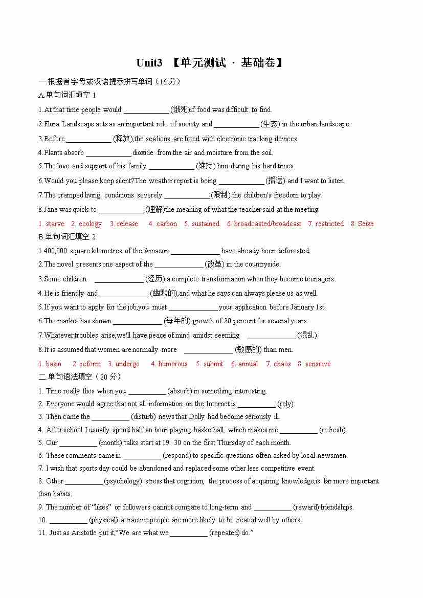 Unit3 ENVIRONMENTAL PROTECTION(单元测试 · 基础卷)(教师版)