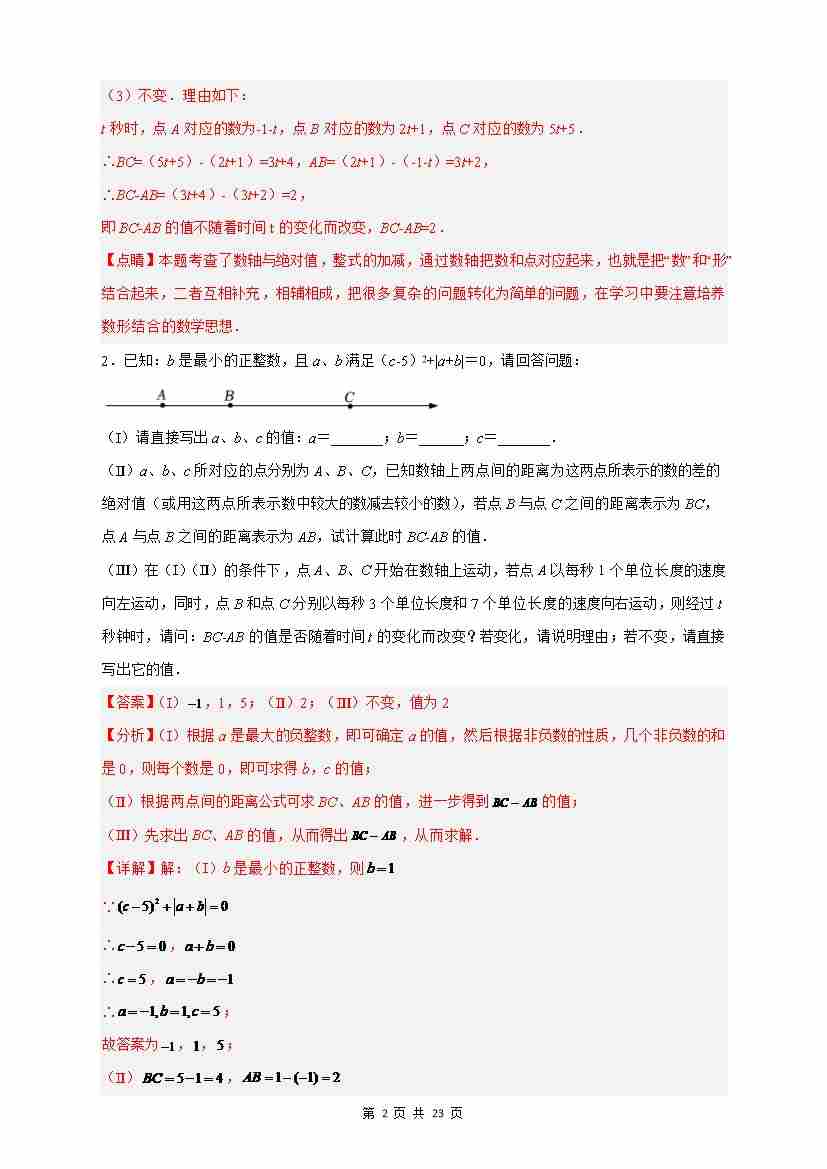 期中难点特训(2)数轴上的动点与整式加减相结合的压轴题(解析版)