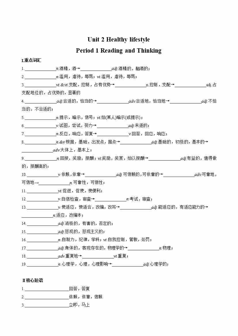 首页 > 全部 > 同步讲义 > Unit 2 healthy lifestyle :Period 1 Reading and Thinking (学案)- (人教版选择性必修第三册)(学生版)