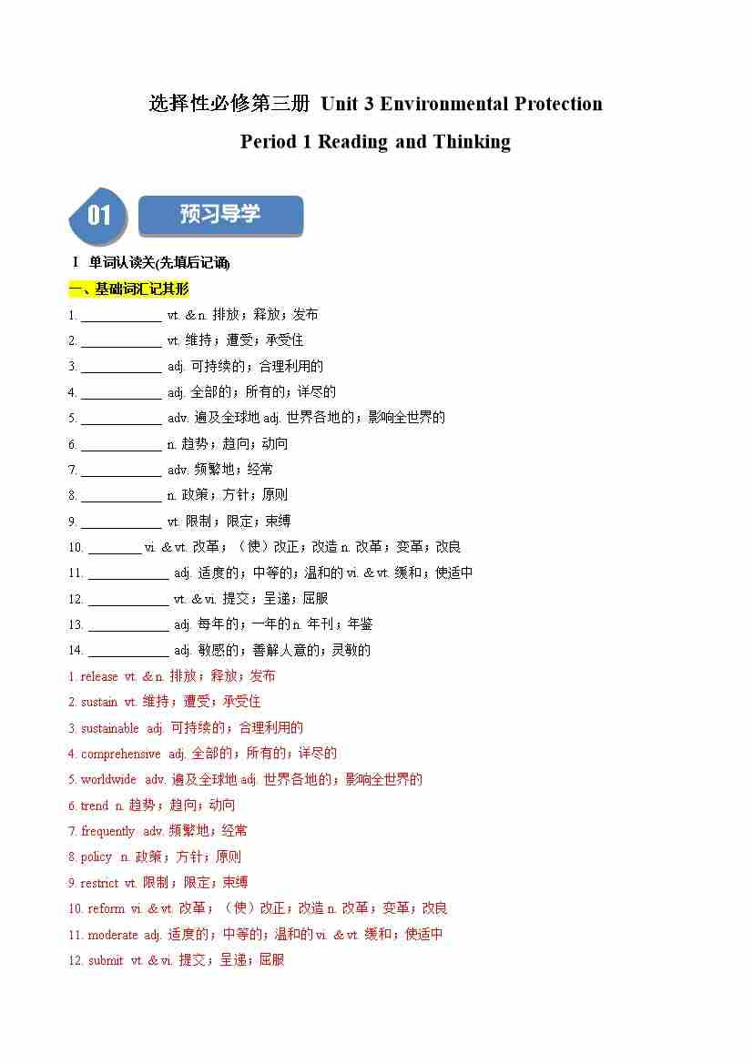 首页 > 全部 > 同步讲义 > Unit 3 Environmental Protection:Period 1 Reading and Thinking(学案)(教师版)-(人教版选择性必修第三册)