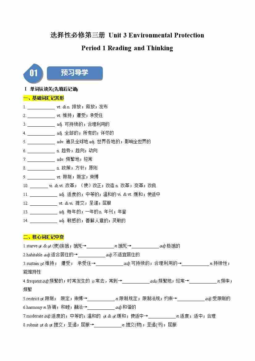 首页 > 全部 > 同步讲义 > Unit 3 Environmental Protection:Period 1 Reading and Thinking(学案)(学生版)-(人教版选择性必修第三册)