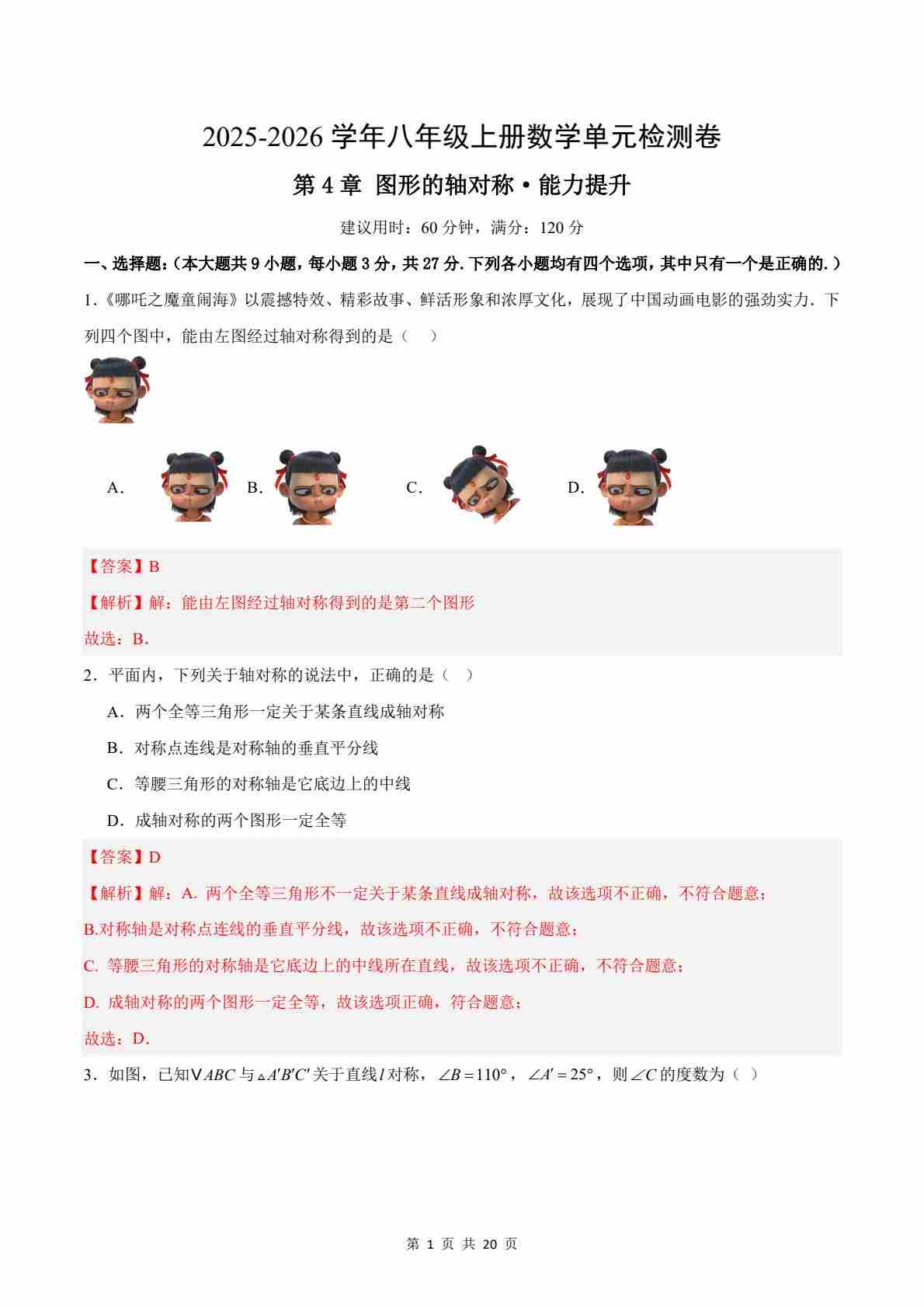 首页 > 全部 > 单元测试 > 第4章 图形的轴对称测试·提升卷(解析版)