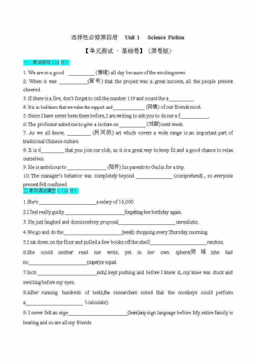 首页 > 全部 > 单元测试 > Unit 1 Science Fiction(单元测试 · 基础卷)(学生版)