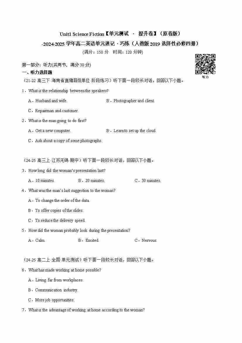 首页 > 全部 > 单元测试 > Unit1 Science Fiction(单元测试 · 提升卷)(学生版)-