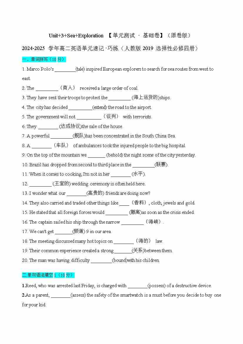 首页 > 全部 > 单元测试 > Unit 3 sea exploration(单元测试 · 基础卷)(学生版)