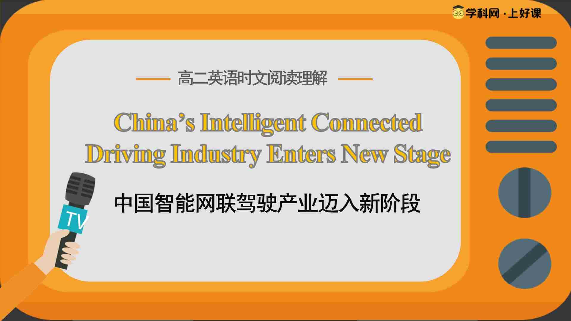 首页 > 全部 > 话题阅读 > 时文阅读05 China's Intelligent Connected Driving Industry Enters New Stage(课件)(话题阅读精练)英语高二通用版