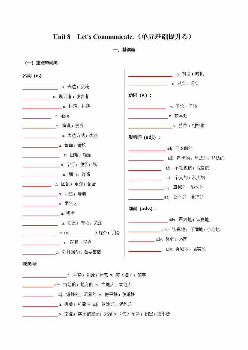 首页 > 全部 > 单元检测卷 > Unit 8 Let's Communicate .【单元基础提升卷】(原卷版)