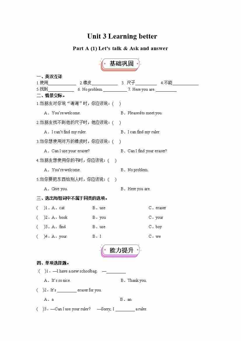 三下英语-Unit3(第1课时)Learning better. PartA Let's talk& Ask and answer 同步分层作业(人教PEP版)