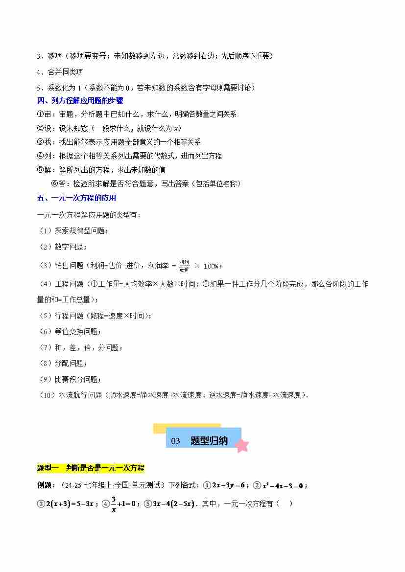 首页 > 全部 > 题型突破 > 第五章 一元一次方程知识归纳与题型突破(单元复习 8类题型清单)(解析版)