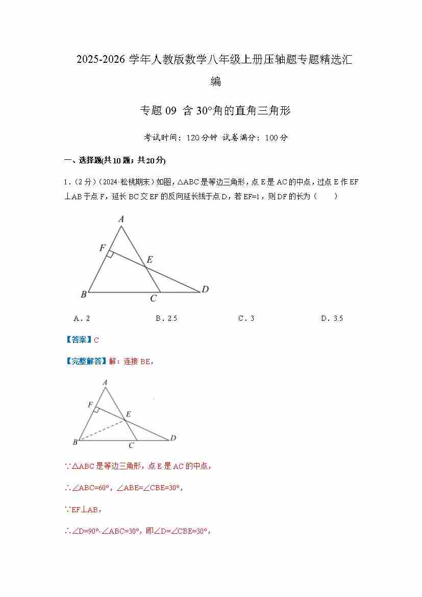 首页 > 全部 > 压轴题 > 专题09 含30°角的直角三角形(解析版)