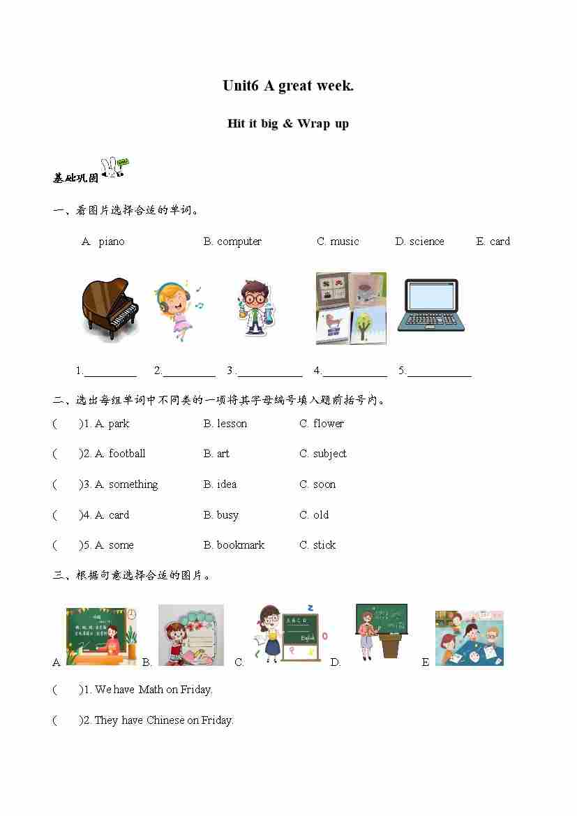 首页 > 全部 > 分层作业 > Unit6 A great week. Hit it big&Wrap up(第3课时)同步分层作业-2024-2025学年英语三年级下册(外研版三起·2024)