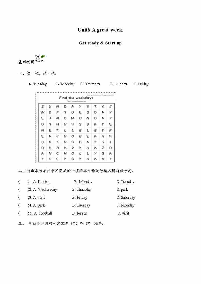 Unit6 A great week. Get ready&Start up(第1课时)同步分层作业-2024-2025学年英语三年级下册(外研版三起·2024)