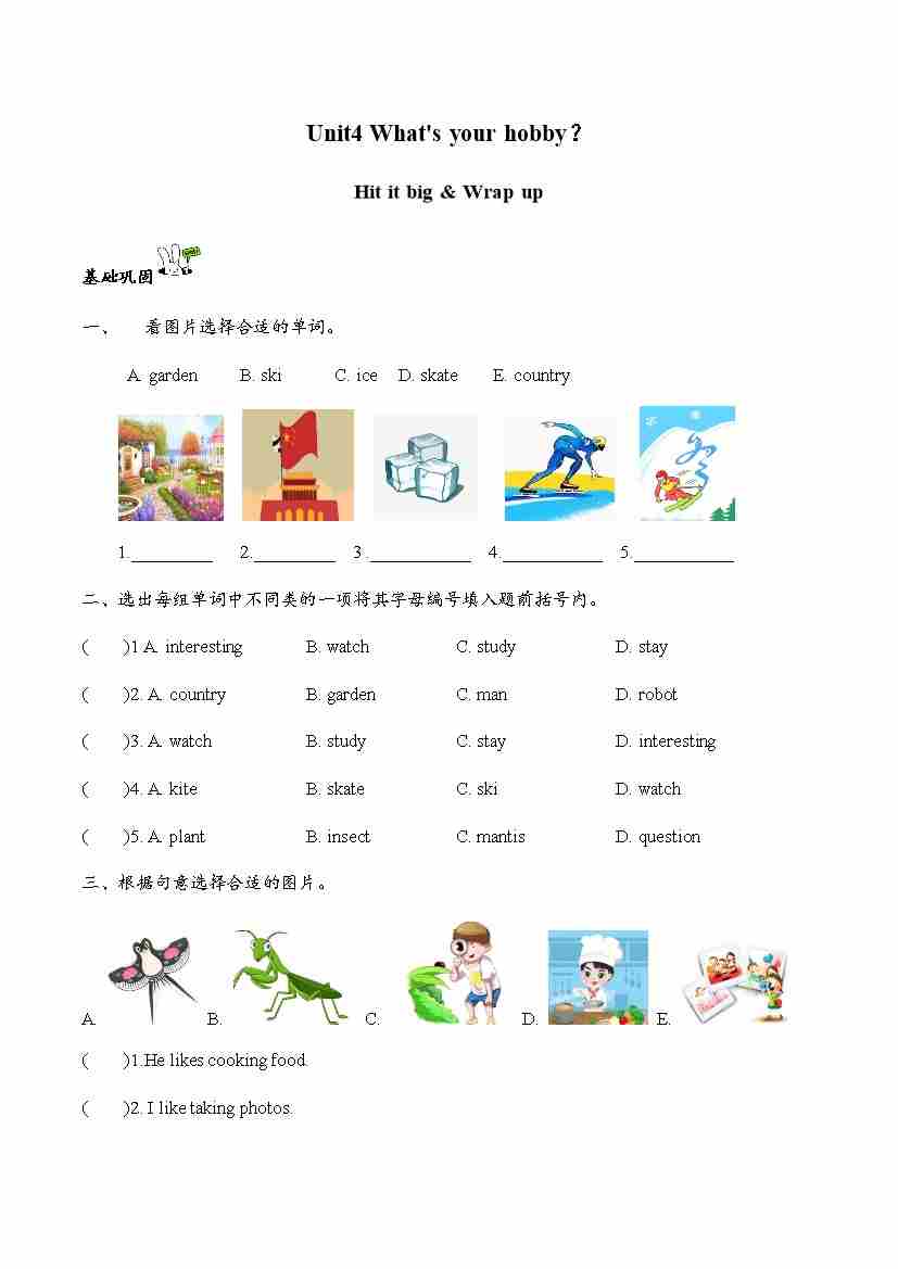 首页 > 全部 > 分层作业 > Unit4 What's your hobby Hit it big & Wrap up(第3课时)同步分层作业-2024-2025学年英语三年级下册(外研版三起·2024)