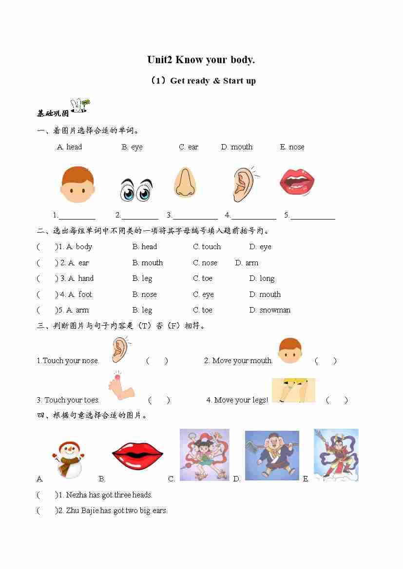 Unit2 Know your body. Get ready & Start up(第1课时)同步分层作业-2024-2025学年英语三年级下册(外研版三起·2024)