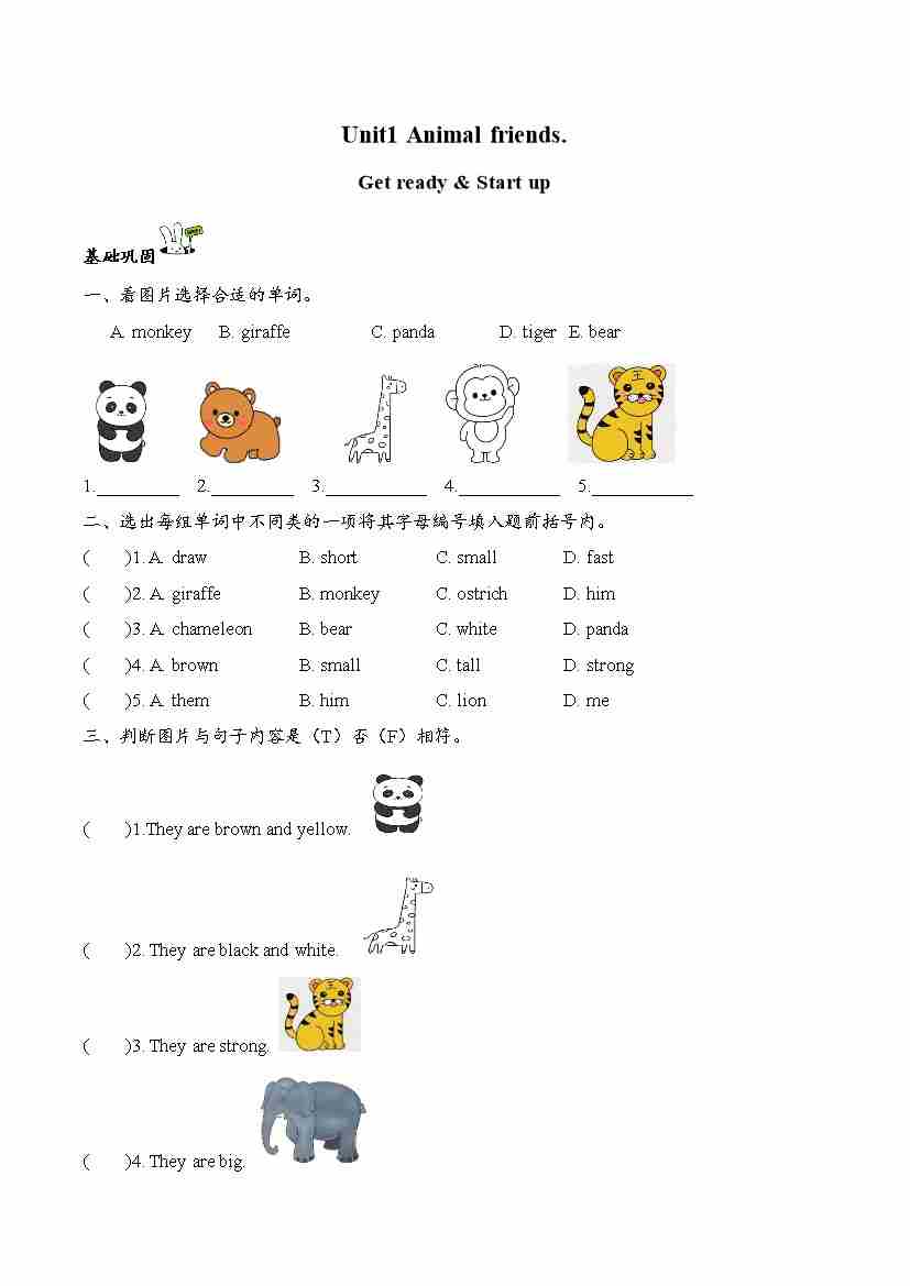 首页 > 全部 > 分层作业 > Unit1Animal friends Hit it big & Wrap up(第3课时)同步分层作业-2024-2025学年英语三年级下册(外研版三起·2024)