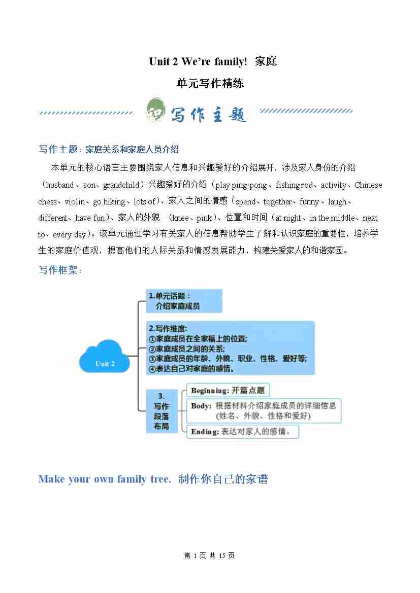 首页 > 全部 > 单元写作 > Unit 2 We're family! 家庭(单元写作精练)(解析版)