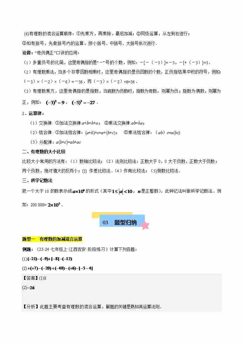 首页 > 全部 > 题型突破 > 第二章 有理数的运算知识归纳与题型突破(单元复习 10类题型清单)(解析版)