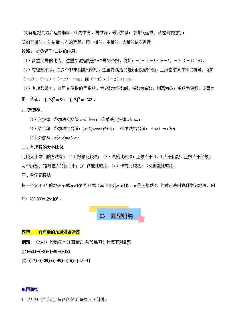 首页 > 全部 > 题型突破 > 第二章 有理数的运算知识归纳与题型突破(单元复习 10类题型清单)(原卷版)