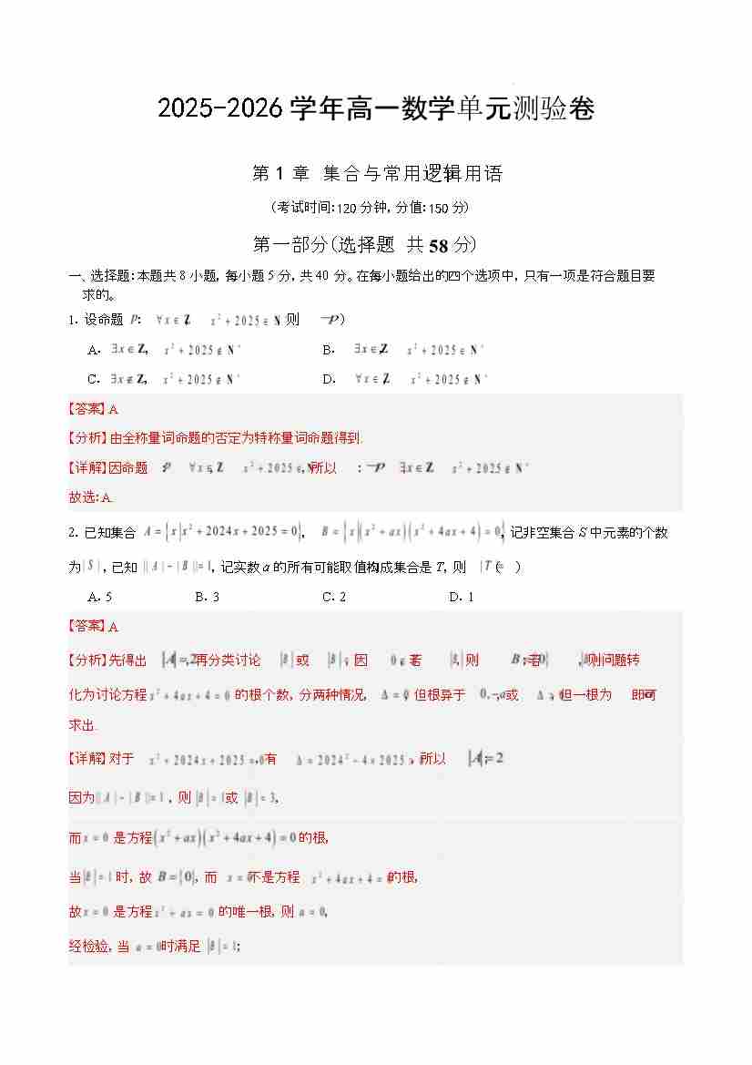 首页 > 全部 > 单元测试 > 数学第一章 集合与常用逻辑用语(单元测试·培优卷)(解析版)