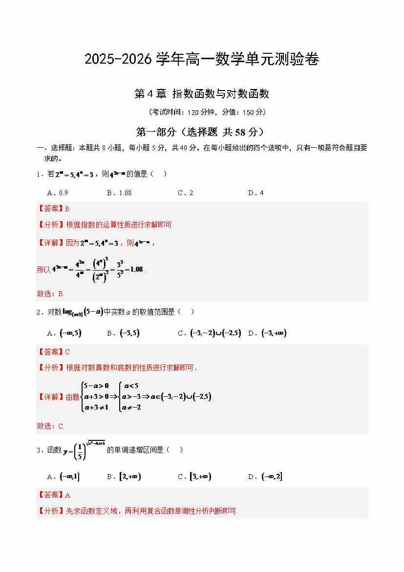 首页 > 全部 > 单元测试 > 数学第四章 指数函数与对数函数(单元测试·培优卷)(解析版)