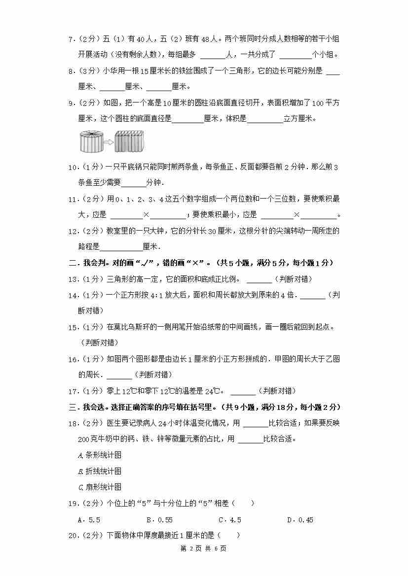 首页 > 全部 > 小升初试卷 > 分班考试终极模拟卷(2) (人教版)A4原卷