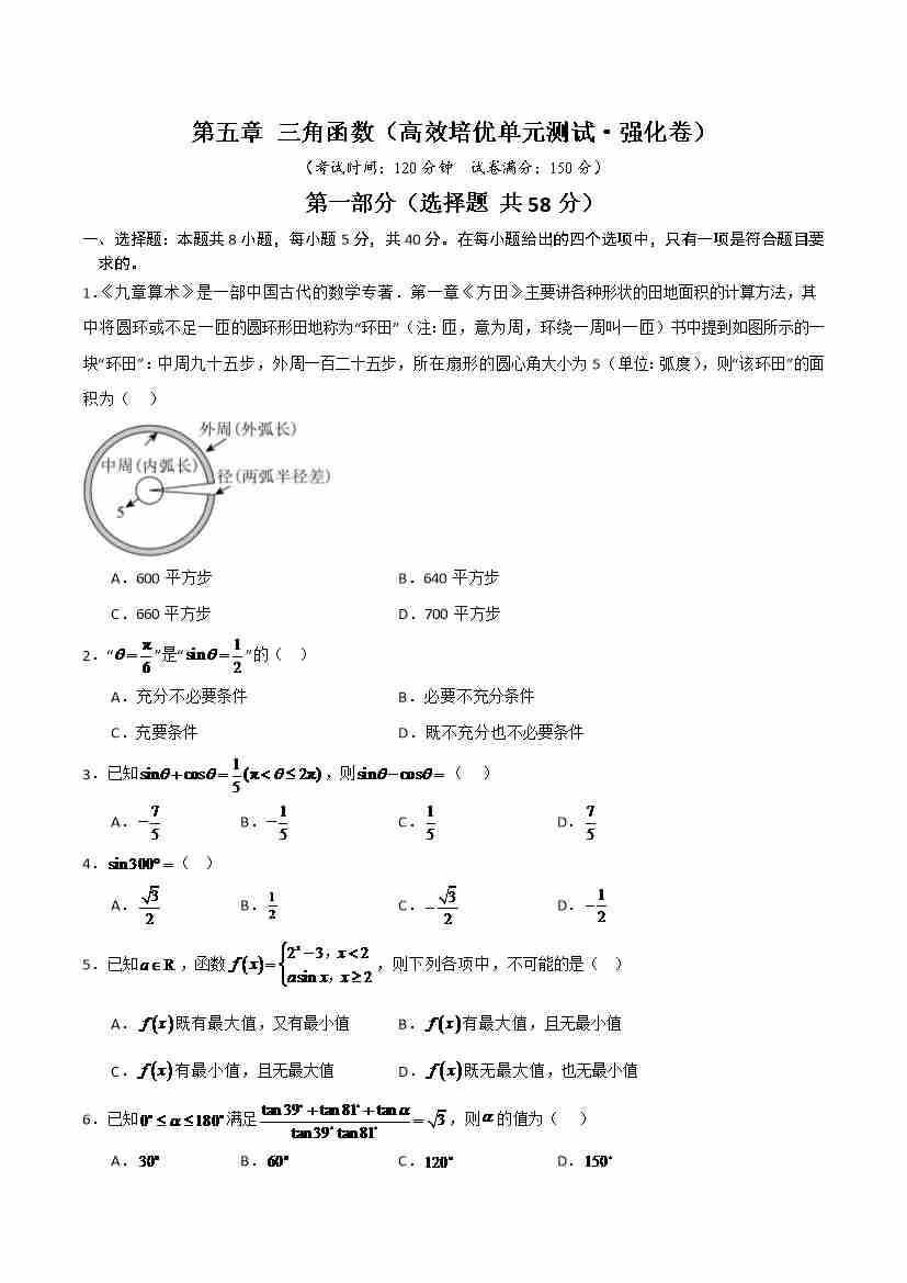 首页 > 全部 > 单元测试 > 第五章 三角函数(高效培优单元测试·强化卷)(学生版)