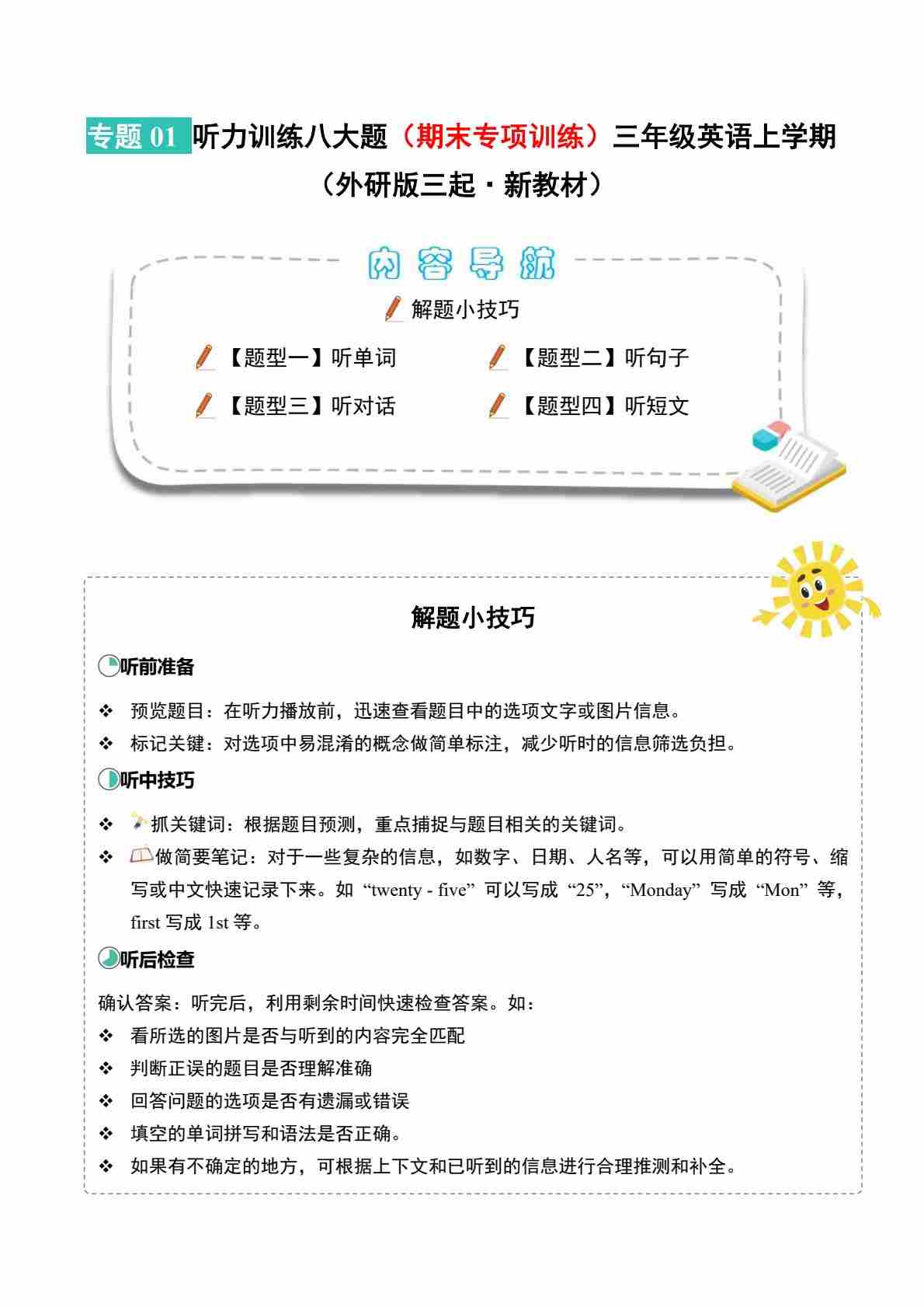 专题01 听力训练(期末专项训练)三年级英语上学期(外研版三起·新教材)