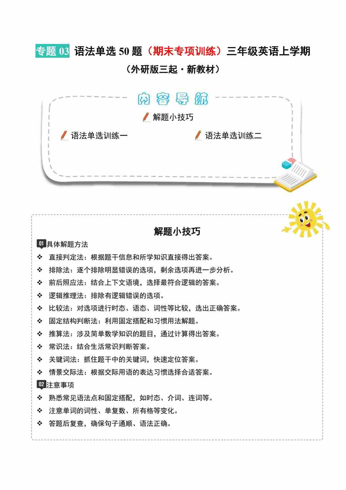 专题03 语法单选(期末专项训练)三年级英语上学期(外研版三起·新教材)
