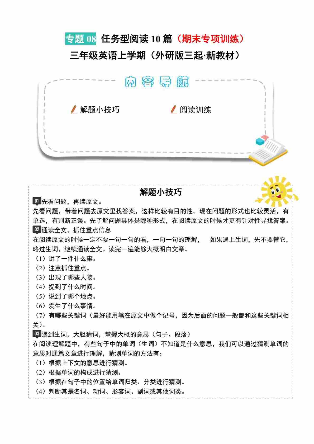 首页 > 全部 > 期末专项 > 专题08 任务型阅读(期末专项训练)三年级英语上学期(外研版三起·新教材)