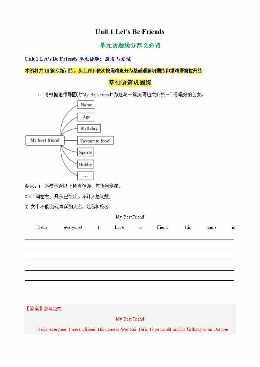 Unit 1 Let’s Be Friends 单元话题满分范文必背(教师版)