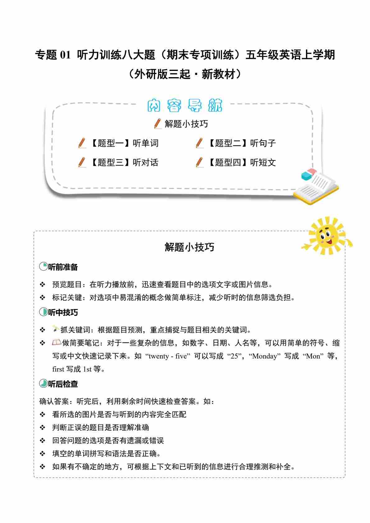 专题01 听力训练(期末专项训练)五年级英语上学期(外研版三起·新教材)