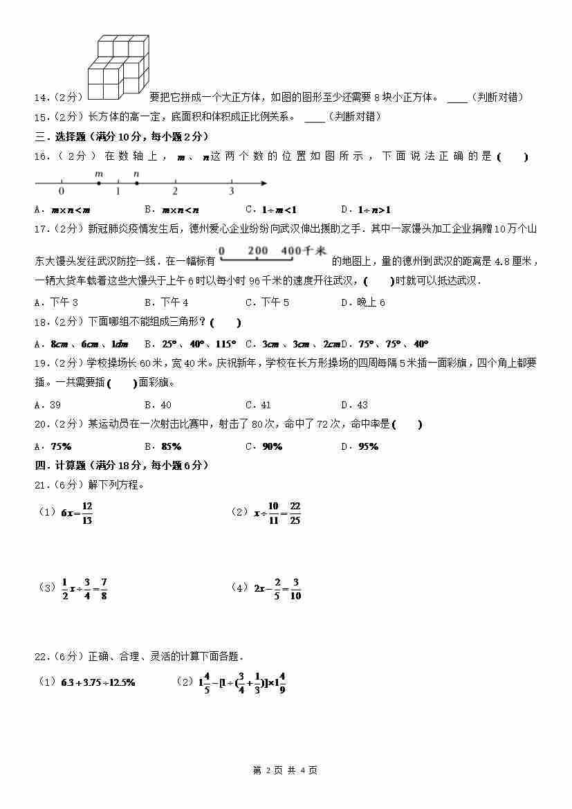 首页 > 全部 > 小升初试卷 > 自主招生重点中学分班质量检测卷2(考试版A4)(人教版)
