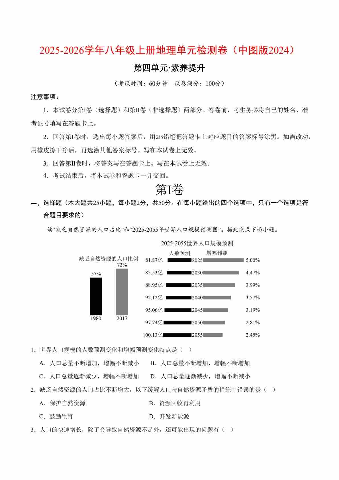 首页 > 全部 > 单元测试 > 第4章 世界人口、城乡景观与文化(单元测试·提升卷)(A4考试版)