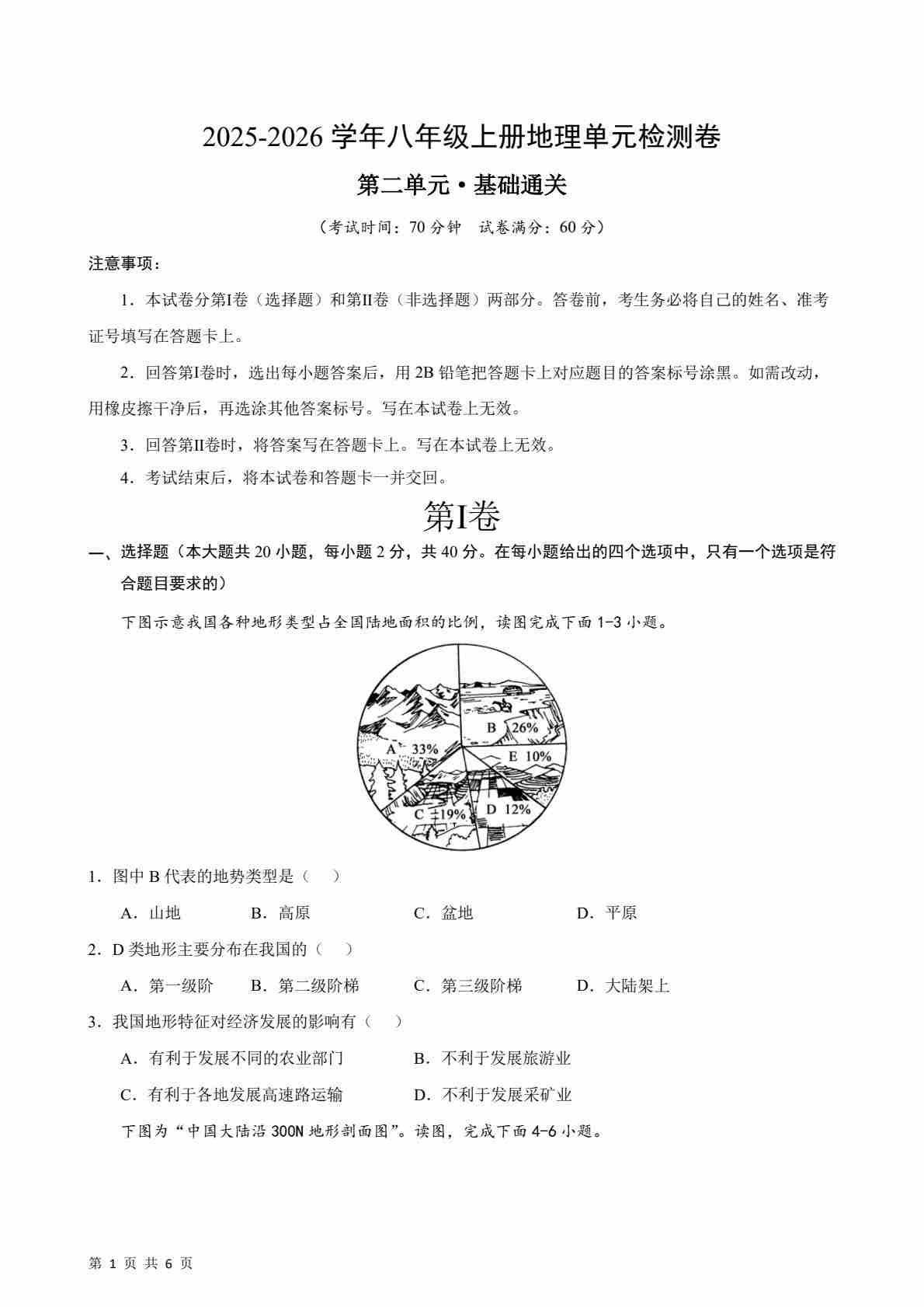 第2章认识中国的自然环境测试·基础卷(考试版A4)