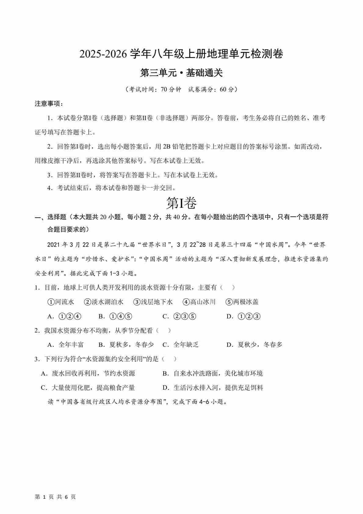 首页 > 全部 > 单元检测 > 第3章认识中国的自然资源测试·基础卷(原卷版)