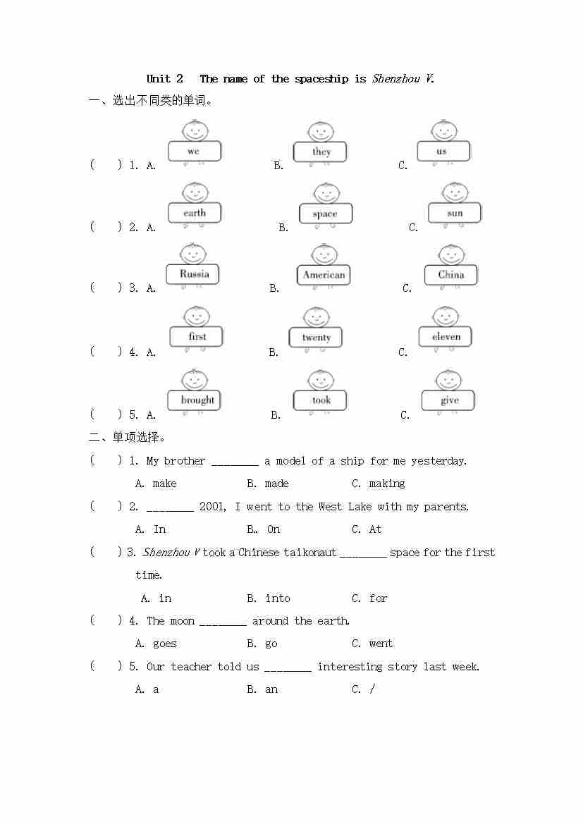首页 > 全部 > 一课一练 > 六年级下册英语一课一练-Module 6 Unit 2 The name of the spaceship is Shenzhou V|外研社(三起)(含答案)