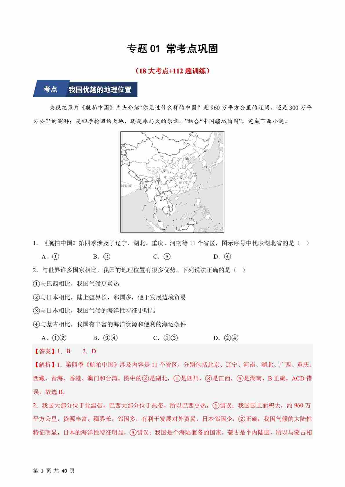 首页 > 全部 > 期中专项 > 【中图·北京版】专题01 常考点巩固(期中专项训练)(解析版)