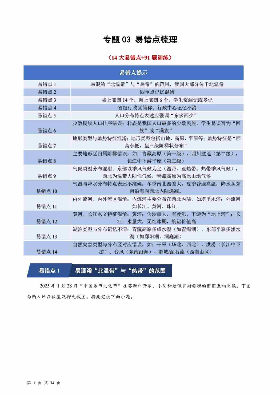 首页 > 全部 > 期中专项 > 【中图·北京版】专题03 易错点梳理(期中专项训练)(解析版)