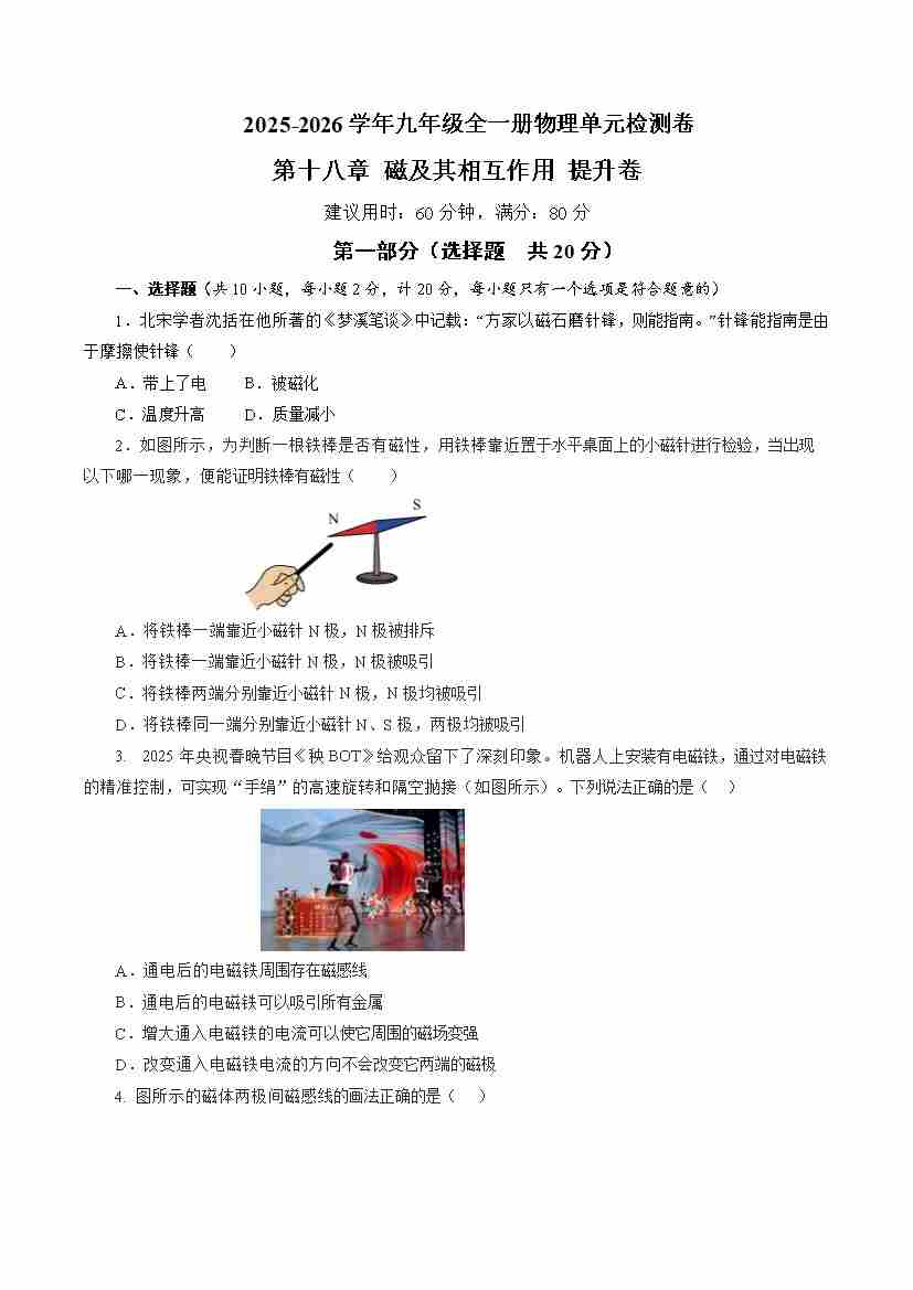 首页 > 全部 > 单元测试卷 > 九全一册 第十八章 磁及其相互作用 单元测试·提升卷(考试版A4)
