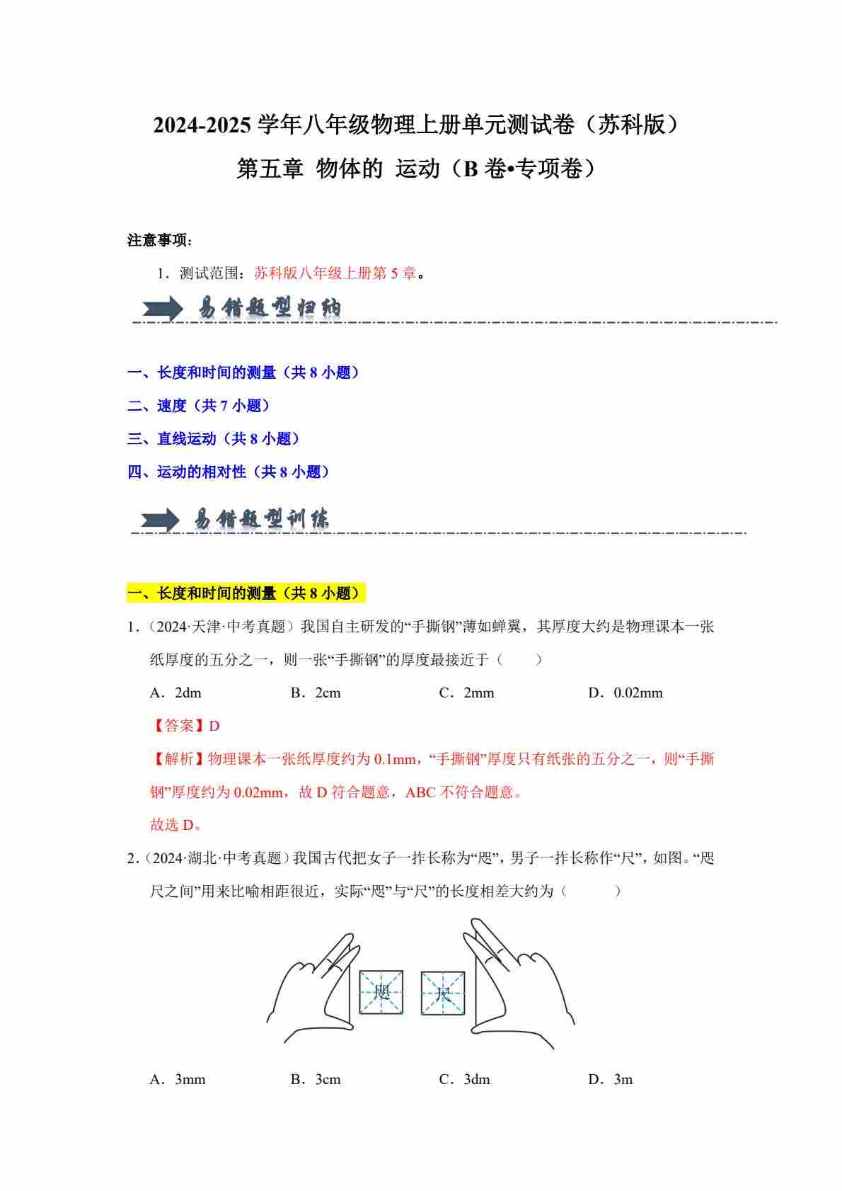 首页 > 全部 > 单元专项 > 第五章 物体的运动【单元测试·专项卷】(解析版)