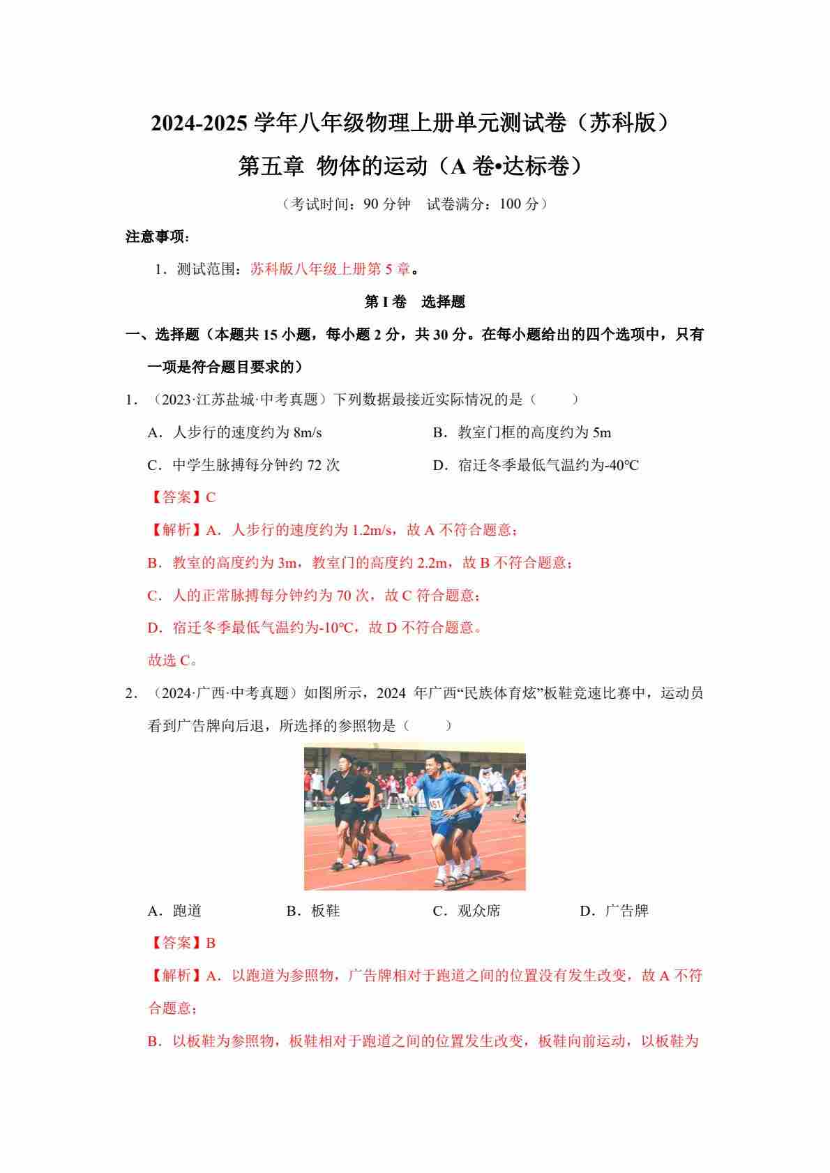 第五章 物体的运动【单元测试·达标卷】(解析版)