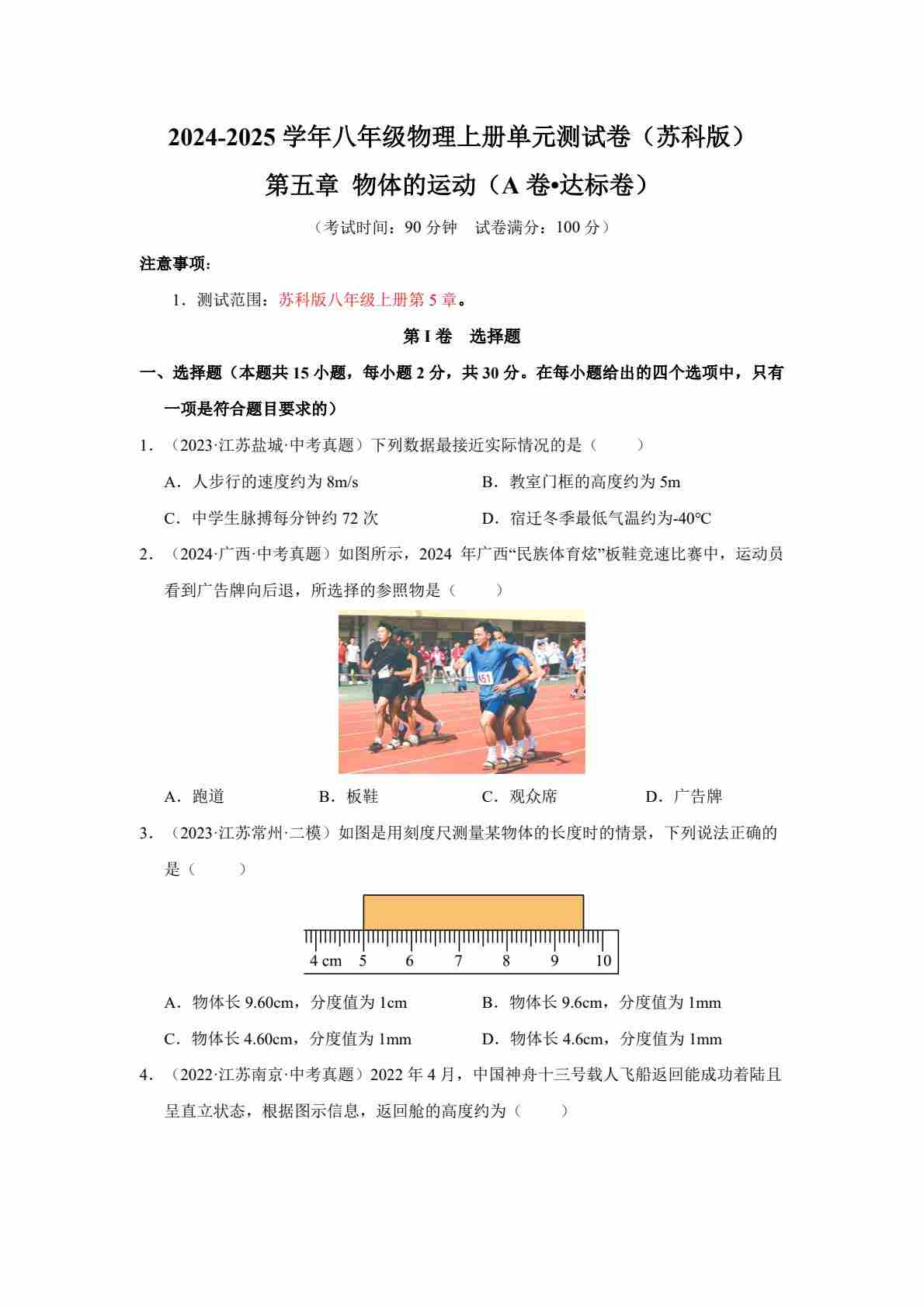 第五章 物体的运动【单元测试·达标卷】(原卷版)