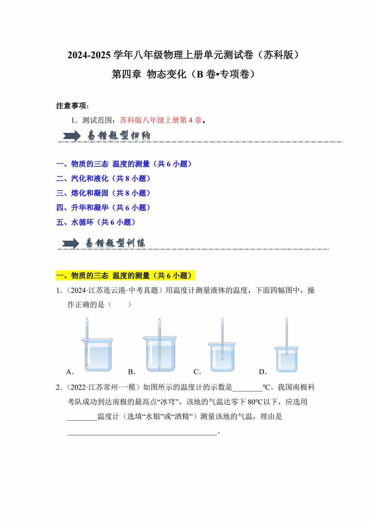 首页 > 全部 > 单元专项 > 第四章 物态变化【单元测试·专项卷】(原卷版)