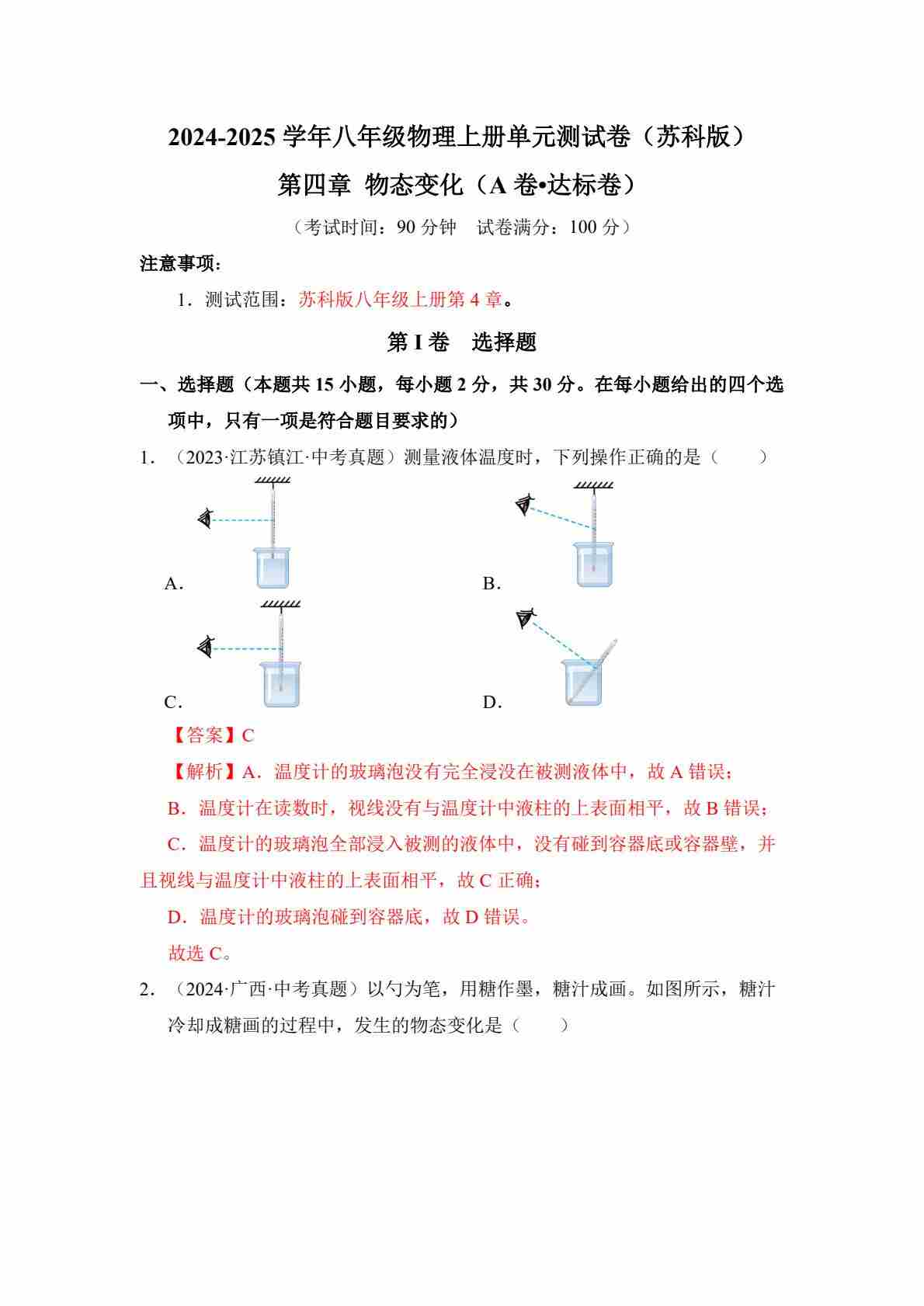 首页 > 全部 > 单元专项 > 第四章 物态变化【单元测试·达标卷】(解析版)